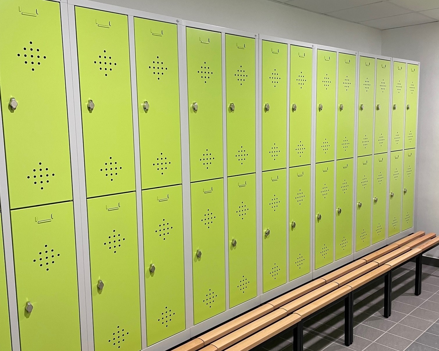 - Deux espaces vestiaires avec douches individuelles et casiers-vestiaires.