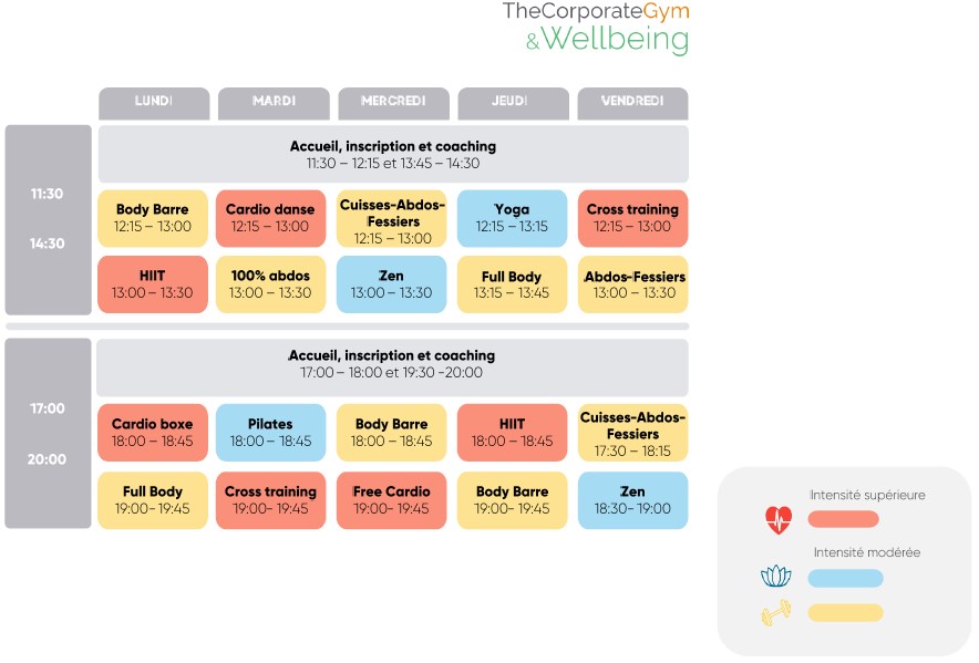 - HIIT : Cours de cardio intensifs à travers des séries d’exercices de courte durée.